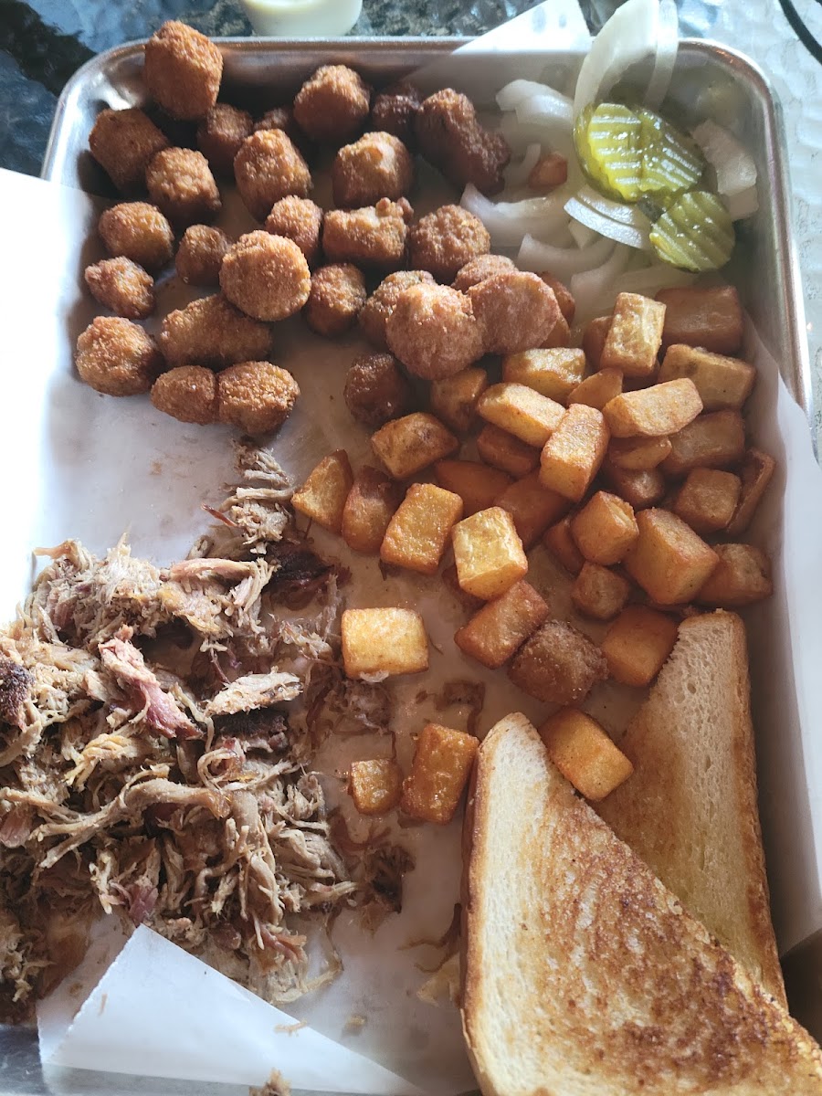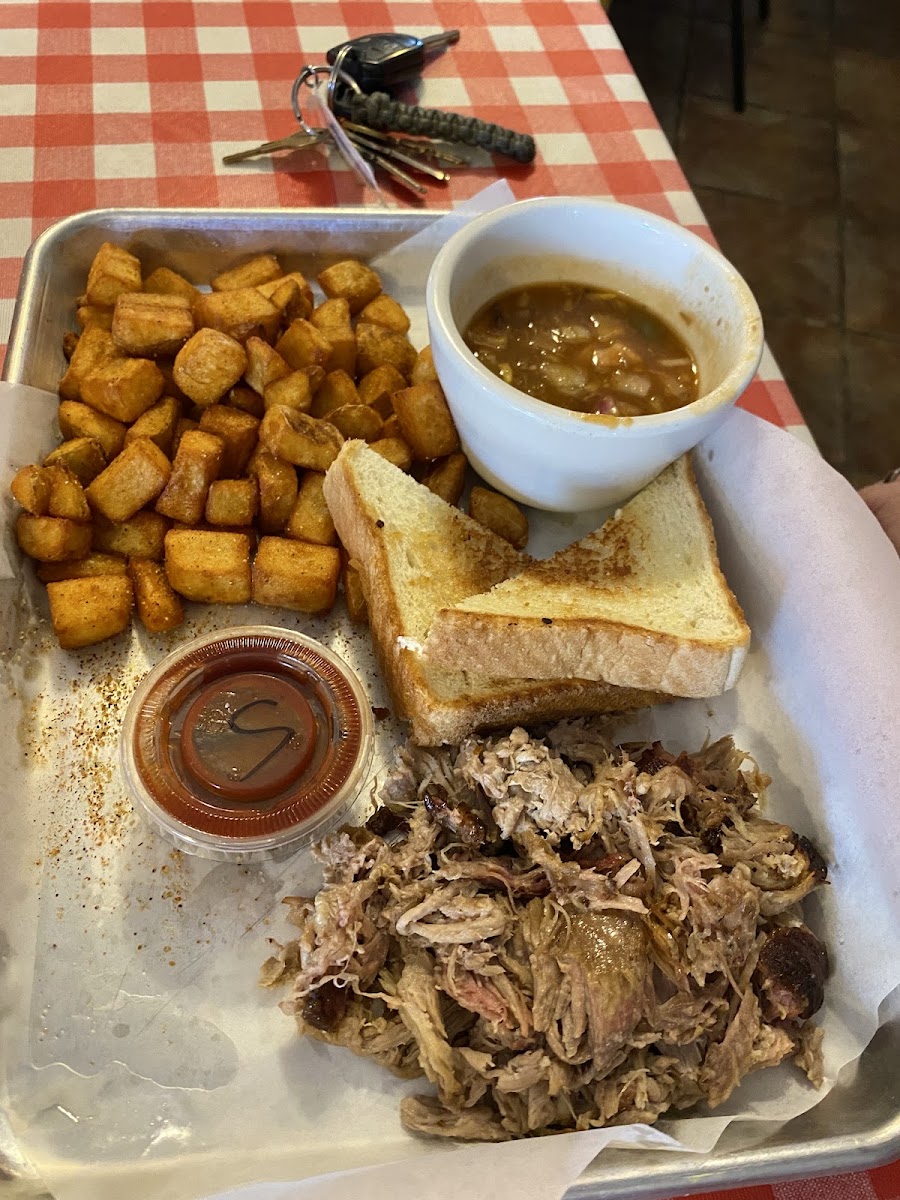 Yummy! Everything was really good! We would definitely come here aging! We both ordered the pulled pork meal. The meat could have been warned up a bit more, still tasted great! The chili cheese fries were hot and fresh! The baked beans were more like pork and beans with onions and peppers, lots of good flavors. Our waitress was supper friendly and took good care of us! The boss lady was out of town and the crew was still doing fantastic! Good job Big Daddy’s!